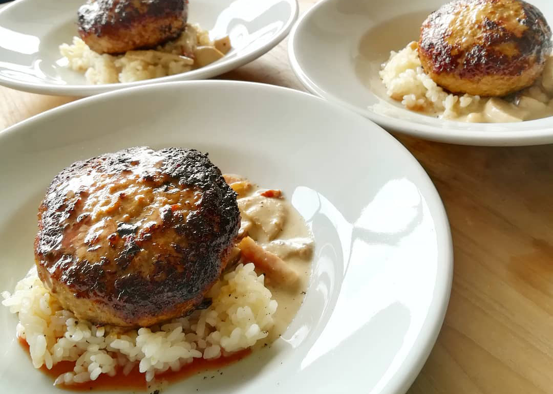 開発メニュー例(シェフ特製ハンバーグ丼とスープ)